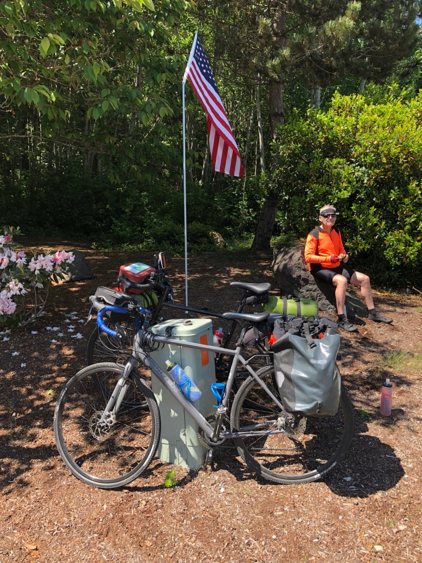 Thanks to the nice folks in Elma who gave us 8 gigantic cookies; there was a little surge of joy every time we remembered, over the next few days, that we still had cookies in our handlebar bags. Thanks to the strangers who stopped us to say that they’d give anything to take our place; especially in the early, leg-sore, butt-sore days, that was an inspiring reminder, just what we needed to keep the right perspective. And a shout-out to all the drivers who were paying just enough attention, who moved over enough, who didn’t honk or yell, who hung back until we’d gone around the blind curve, and who—occasionally—gave us a wave.