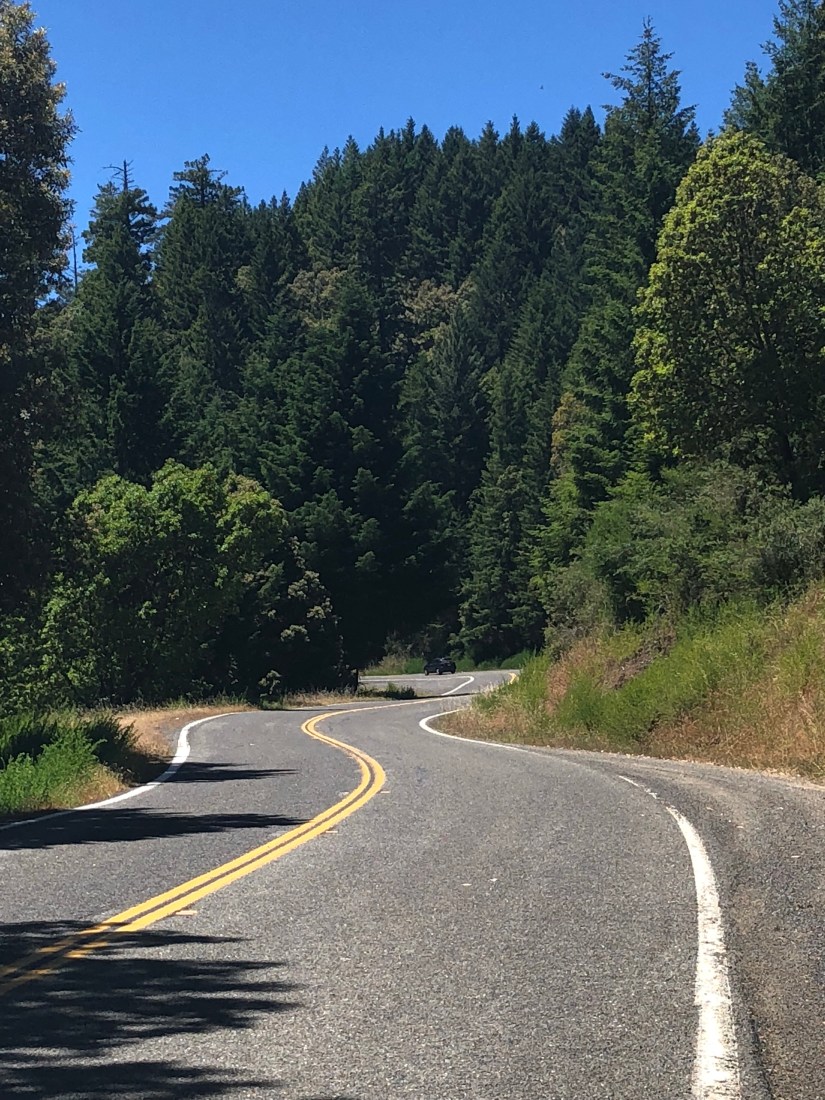 The good parts are too many to count. My favorite days were the two between Fort Bragg and Bodega Bay, when Highway 1 became—for me—a character in the story. Those S-curves, endlessly interesting, each a little different from the rest—steep and not so steep, varyingly winding.