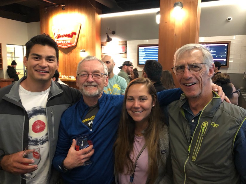 Every single summit, even the ittiest-bittiest. Buying a fresh set of clothes in San Diego so we wouldn’t be thrown out of a halfway decent restaurant. The hat store in Santa Barbara. Eating sandwiches in the cold outside a grocery store in Centralia (day 5), feeling pretty miserable—until an older woman, limping slightly, stopped by our bench: “Oh, good for you! I always wanted to do that. Always wanted to….” She trailed off, looked at her bum leg, smiled sadly, and added, “Can’t now. Never did, and can’t now.” I didn’t know what to say, but I knew what to feel: cold, yes; tired, yes; sore, yes; lucky, definitely.