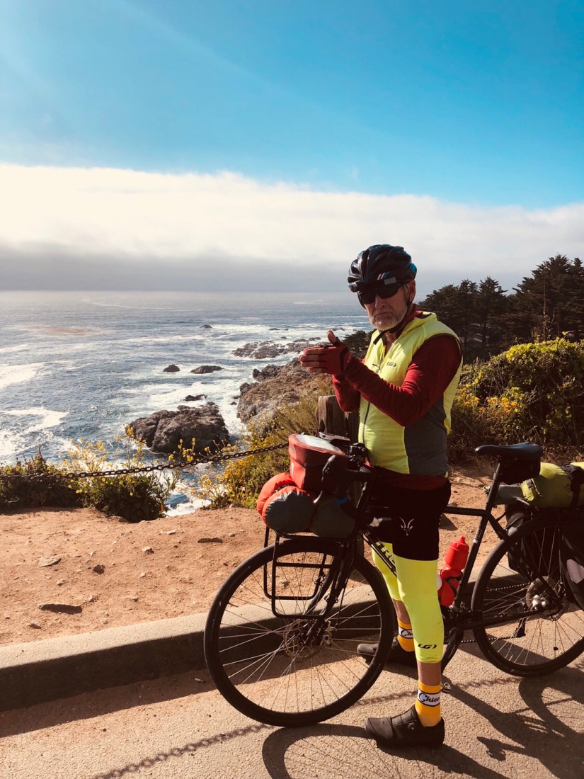 The “why” question, after all, is easy to answer. To see if we can. To feel stronger. To travel through a spectacularly beautiful part of the country going 10-12 mph—exactly the right speed at which to pass (for example) among the towering redwoods, which David always likens—rightly—to a cathedral. On a bike, you can smell them, you can hear the rustling, you can live within the mist. You’re deep in the forest long enough to get how differently the light plays on the road here; and when you’re alone on the road, when there is no traffic, it’s hard not to appreciate the justness of Ben Wyatt’s enthusiastic revelation, in the final season of Parks & Rec: “Wait—this is Endor!”