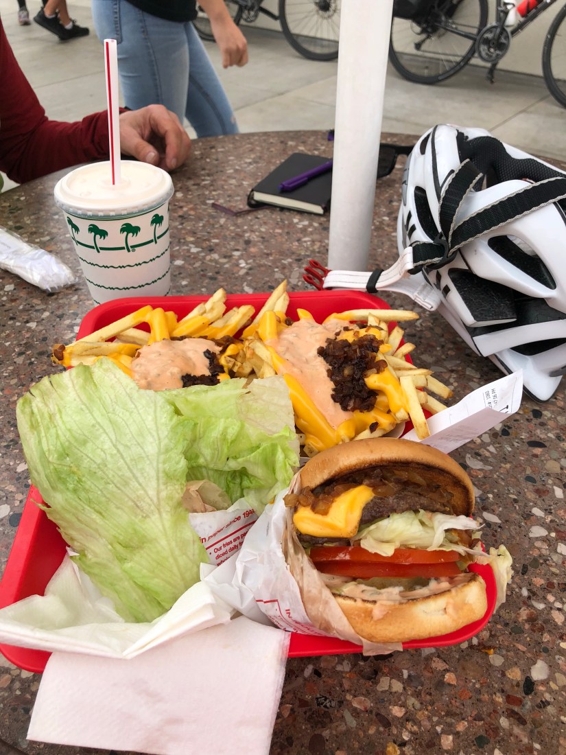 The road trip to Bend, and lunch at the Klamath Basin Brewery, when we were full of excitement and had no idea how anything would go, and the road trip back, stopping at In-n-Out, for the first time not having to keep an eye on our bikes, equal parts satisfied and excited to be Reno-bound and melancholic. Stopping at Walmart in Ridgecrest for cheap CDs to pass the time (Prince was our best choice).