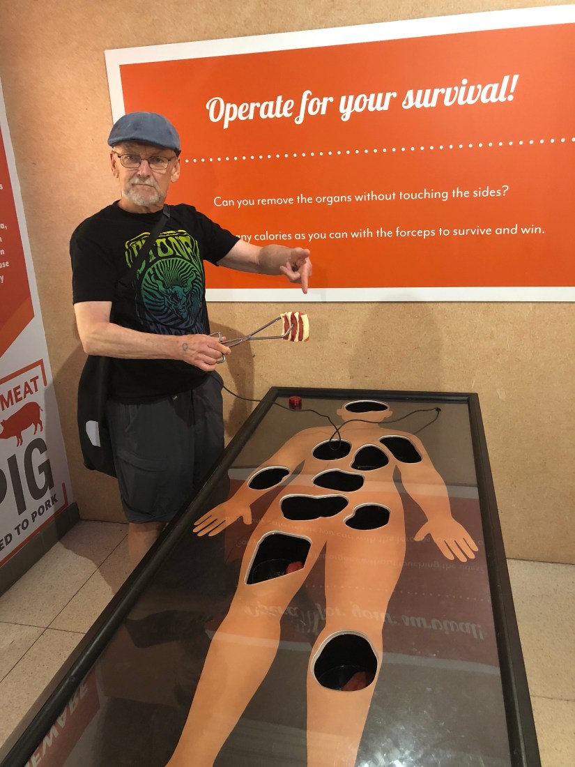 Goofing at the cannibalism exhibit, Museum of Man, San Diego.