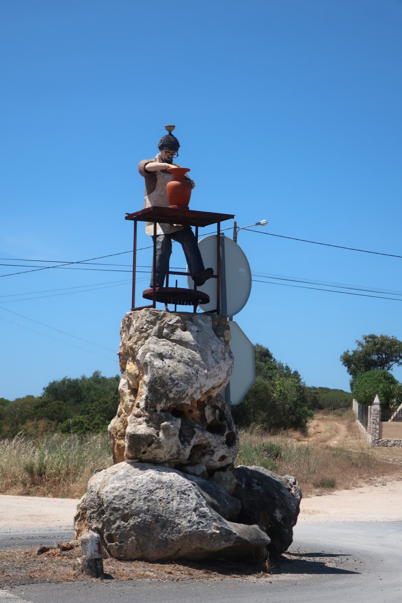Soon we were in the saddle and sailing along quiet tertiary roads to the nearly imperceptible towns of Luz and Bergau, little once-traditional villages overshadowed by luxury gated developments, golf courses and tennis clubs. Along the way, as always in Portugal, we were fascinated by the ubiquitous roadside art.