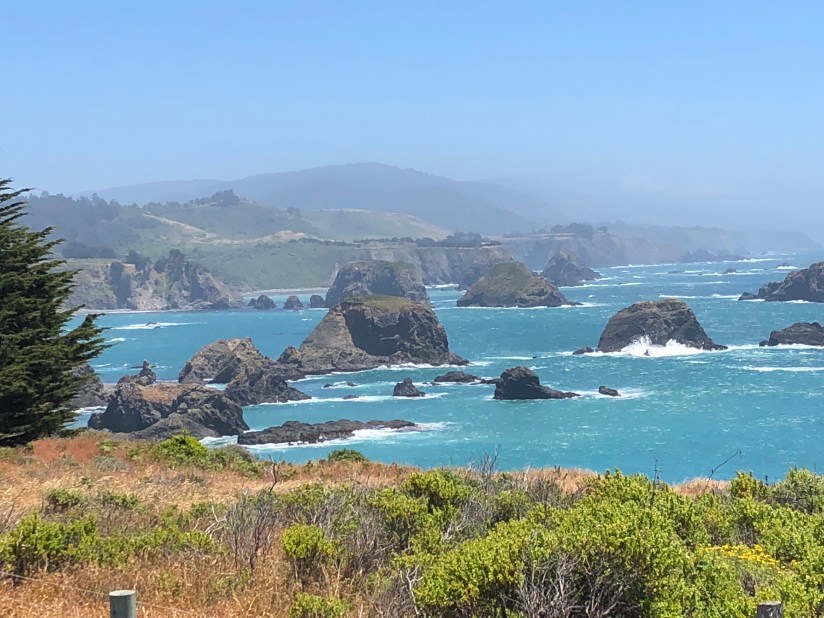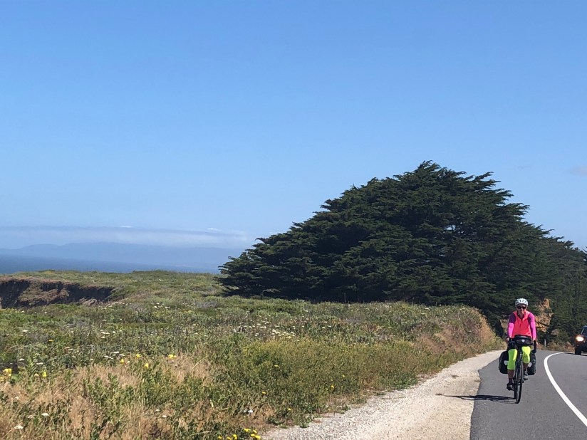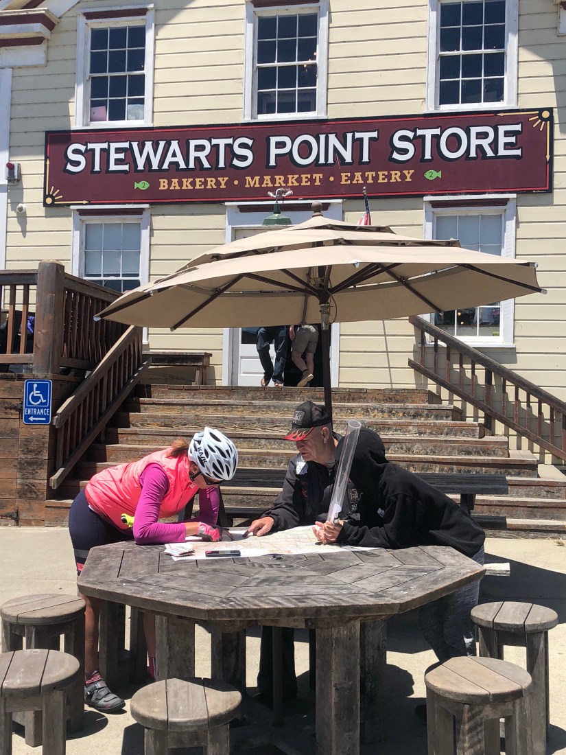 Tuesday, Day 19. Because we knew today would be a short one, just under 50 miles, we enjoyed a relatively leisurely morning. Slept in a bit, then walked to the nearby Cafe One for breakfast. A very NorCal menu, organic, heavy on veggies; the so-called āhippie (loaded) potatoesā and the “hippie scramble” were solid. Lingered there working on the blog for the day before and writing postcards and Father’s Day cards. Ā Catching up a bit.