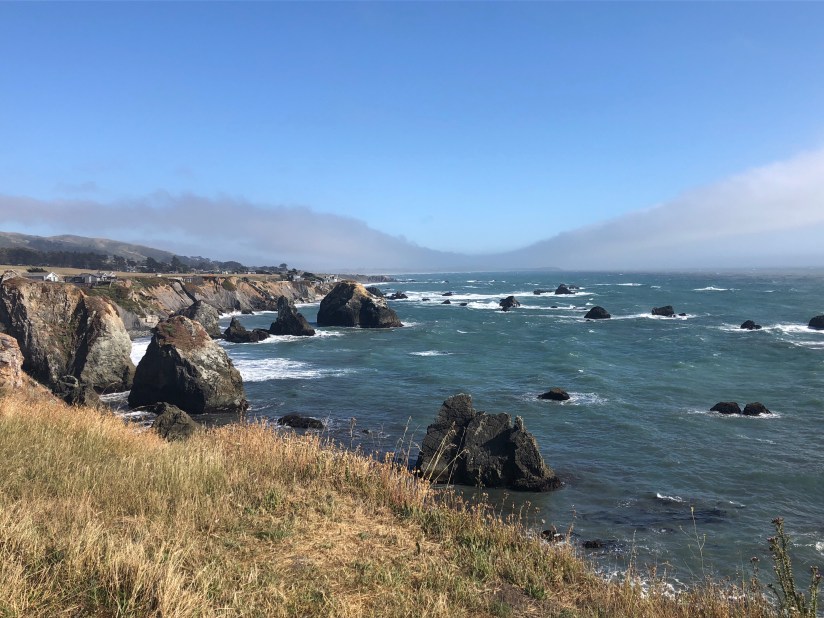 We rode south over gentle hills a few miles, detouring slightly to see (precious) Mendocino, then rejoined Highway 1. The ride was uneventful but spectacular: the coastal views are breathtakingly gorgeous.