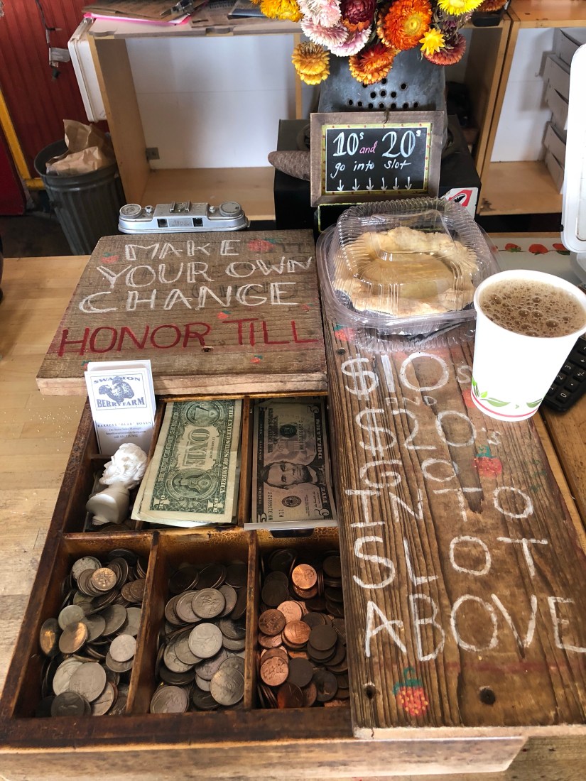 We stopped in Elk for lunch at an overpriced but adorable local market, which included a loo with a view.