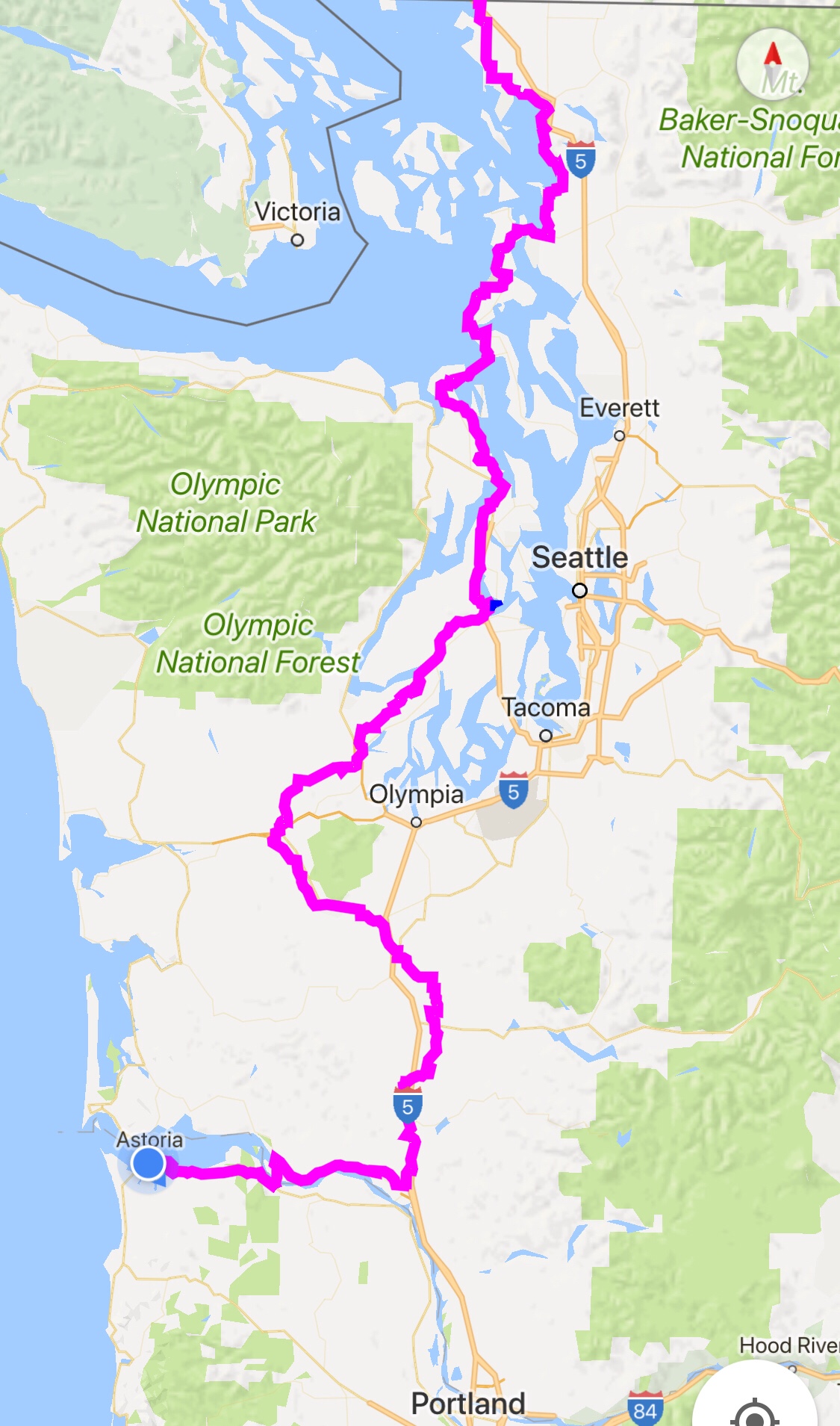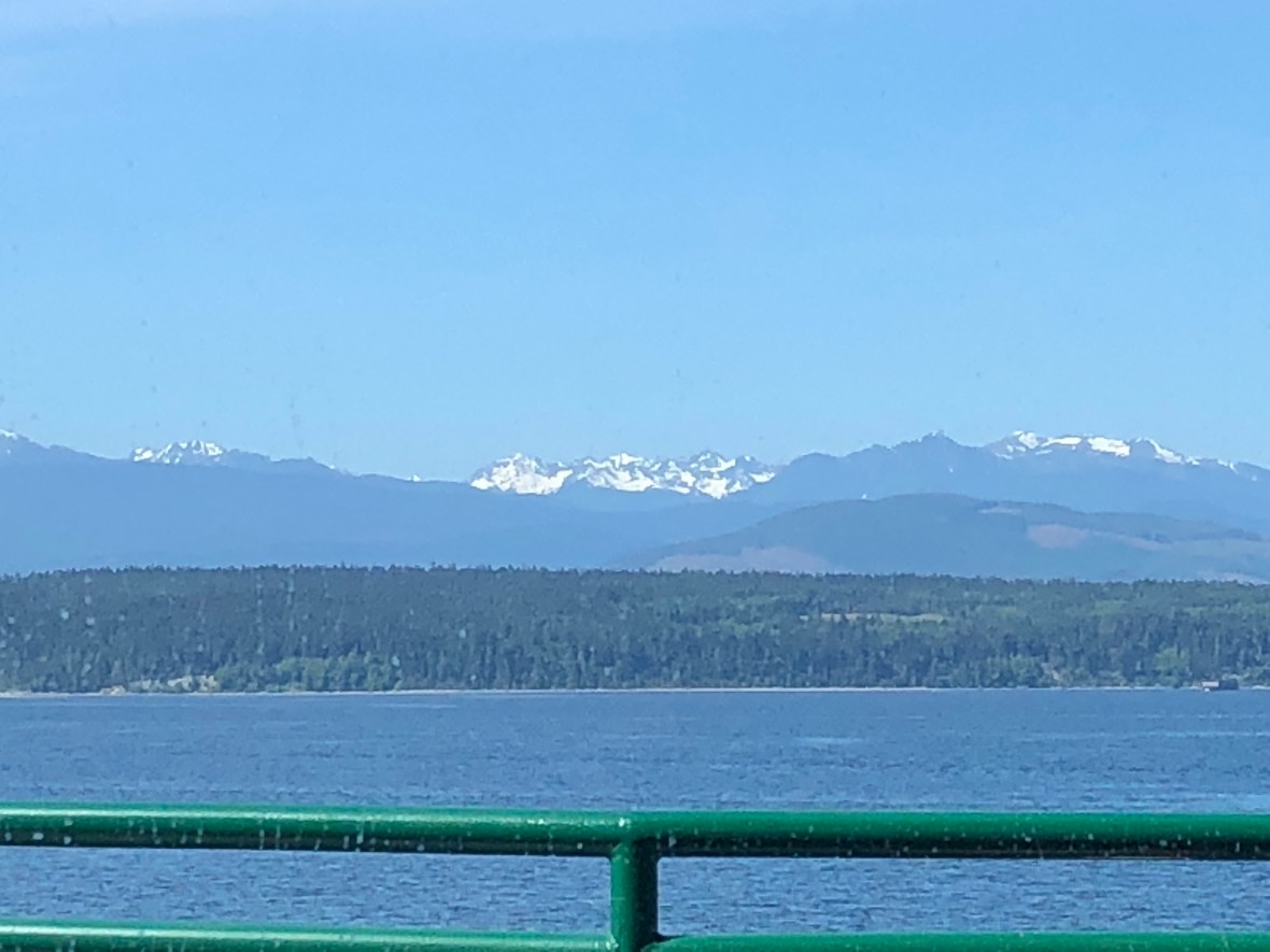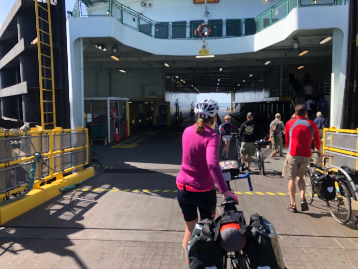 Mile 40 came crossing the Hood Canal and following its east bank south across rolling woodlands into busy Silverdale and Bremerton, and as the long hot (!) Northwestern afternoon turned into a beautiful evening, we rolled into Belfair and the only motel in town, a $63 room with somebody else’s hair all over the shower wall.