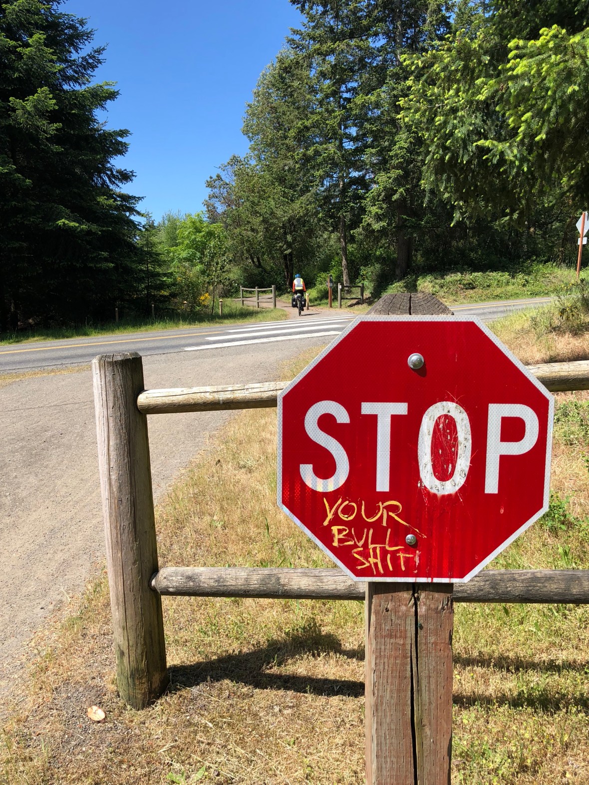 Some years back, the Oregon tourism office thought up a reverse-psychology campaign: one image was a map showing I-5 bypassing the state, the implication being that they didn’t need or want your business; the other, a drawing of a bicyclist wearing a mask and snorkel, with the caption “Last year in Oregon 530 people fell off their bicycles — and drowned” (i.e. it’s so wet you don’t want to move here).