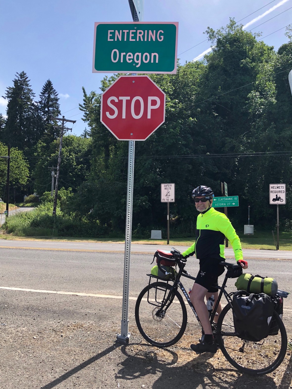 The rest day in Ass-toria (hey, that’s how they say it) had the desired effect. We enjoyed a leisurely breakfast, for a change, browsed in a bookstore, found a bike shop, and checked out four of the five breweries (one was closed for a family emergency). Did some routine bike maintenance, washed some clothes, packed again–and then after a long sleep, we took off with fairly fresh legs, feeling ready for a new state.