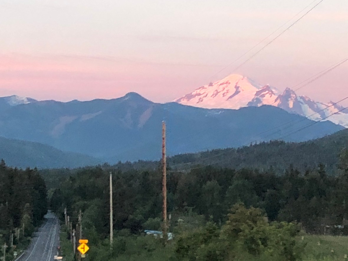 That night ended back in peaceful Glacier, with a drink at the local pub Graham’s and a pre-bedtime soak in the hot tub under the stars, with a lot of quiet and with a clear view of the startlingly proximate Mt. Baker, a 10,780-foot active volcano with one of the highest snowfalls in the lower 48.